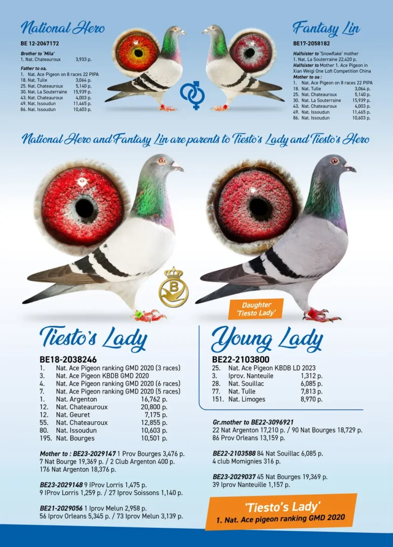 Nog vóór “Tiësto Mulan” zijn intrede deed, was er “Tiësto’s Lady”, een duivin die de toon zette door zowel een nationale titel als een nationale vlucht te winnen: