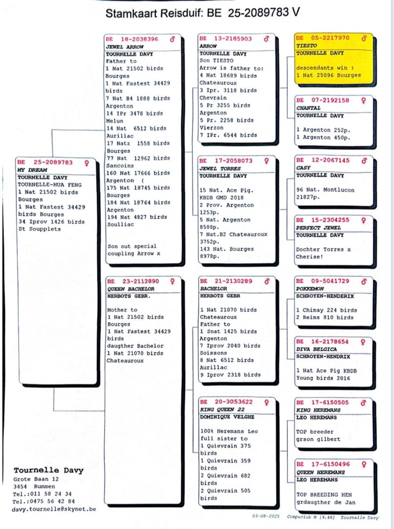 Het seizoen 2025 begon al even indrukwekkend. De jonge duivin “My Dream” zorgde voor een droomstart van het jonge duiven seizoen door 1e Nationaal Bourges Jonge & Oude duiven te winnen tegen 34.429 duiven.