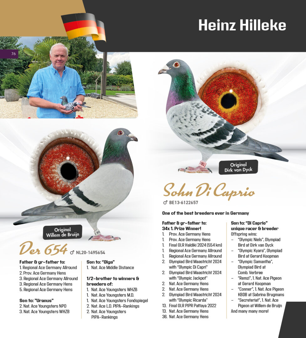 Uit: ”Sohn Uranus x Olga”, Willem de Bruijn, Superkweker (Gr) vader 1.-3.-3.-5. Regionaal Asduif, 2. Prov. Asduif Duivinnen, zoon ”Uranus” & ”Olga” x ”To.Stammvogel 85”, inteelt ”Jan”, 1. Nat. Asduif bij Leo Heremans