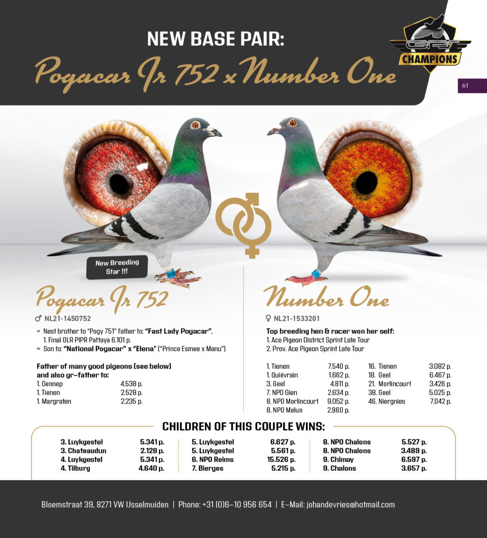 Uit: ”Son Base Pair”, zoon nieuwe Superkoppel ”Pogacar Jr. 752” & ”Number One” x ”De 158”, 23. NPO 3.005 d., 47. NPO 10.708 d., 59. NPO 4.490 d., 61. NPO 5.235 d., dochter nieuwe Stamvader ”Pogacar Jr. 752”