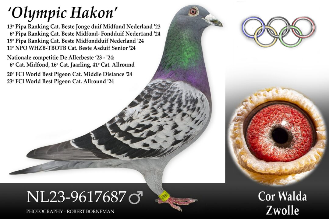 Naast Olympic Super Girl stellen we opnieuw een Olympiadeduif van Cor aan u voor. Ditmaal is het de NL23- 9617687, Olympic Hakon genaamd. Deze doffer schopte het tot 2e Olympiadeduif Cat. Midfond op de Olympiade in Dortmund.