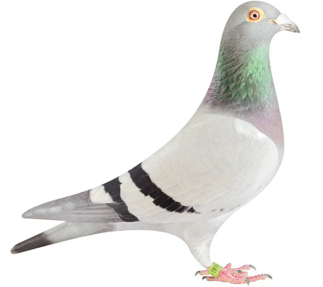Dit blauwband duivinnetje is verder een rustige duif. Niet super tam, maar je hoeft er ook niet achter aan te vangen. Dit komt omdat de duiven als jong gevoerd worden op een tafeltje en gewend raken aan de hand. Wat dan de reden is van haar uitzonderlijke prestaties? ‘Ik kan het niet zien, wat haar uitzonderlijk maakt’. Een eigenschap die ze wel heeft is dat ze in het seizoen even op gang moet komen. Eenmaal op stoom liegen haar prestaties er niet om. Het is geen duif om mee te doen op een tentoonstelling en de illusie te hebben dat je een 1e prijs pakt. ‘Ik vind het geen schoonheid, dat komt misschien door haar lichte oog. Maar er mankeert verder niks aan’.