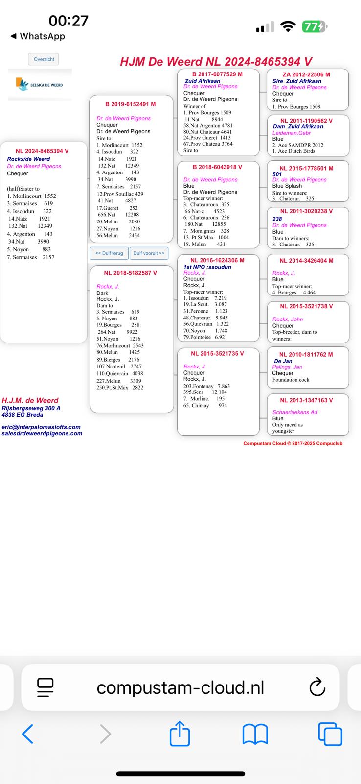 Bon 42: Interpalomas/Henk De Weerd (NL) schenkt jonge duif 2025 (zie pedigree) uit top kweekkoppel