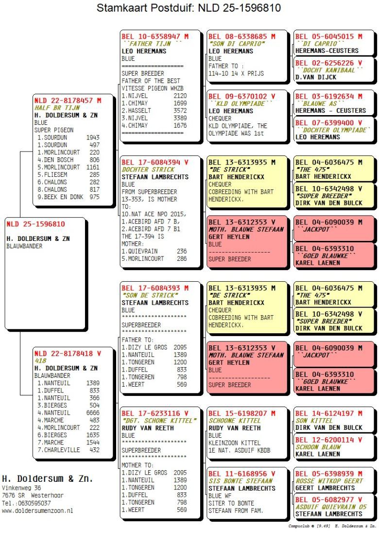 Bon 45: Hilbert & Rick Doldersum. (NL) schenken jonge duif 2025 (zie pedigree) uit twee 1e prijs winnaars