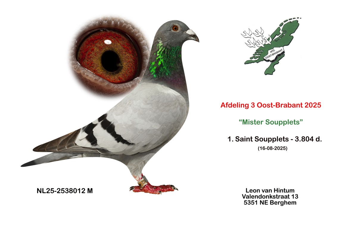 Met de jonge duiven werd voorzichtig begonnen, maar die bleken op een gegeven moment ook het kopvliegen in de genen te hebben. Op 17 augustus won Leon namelijk de 1e van het afdelingsconcours met zijn jonge doffer “Mister Soupplets”!