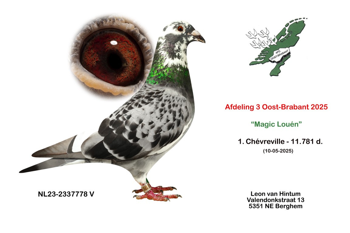 Een hoogtepunt op een afdelingsconcours liet dit jaar niet lang op zich wachten, want op de 2e midfondvlucht was het raak met de 1e prijs van 11.781 deelnemende duiven. Zijn 2e getekende duivin “Magic-Louen” eiste de overwinning van Chevreville op, maar daarnaast speelden 24 van de 26 ingezette duiven prijs!