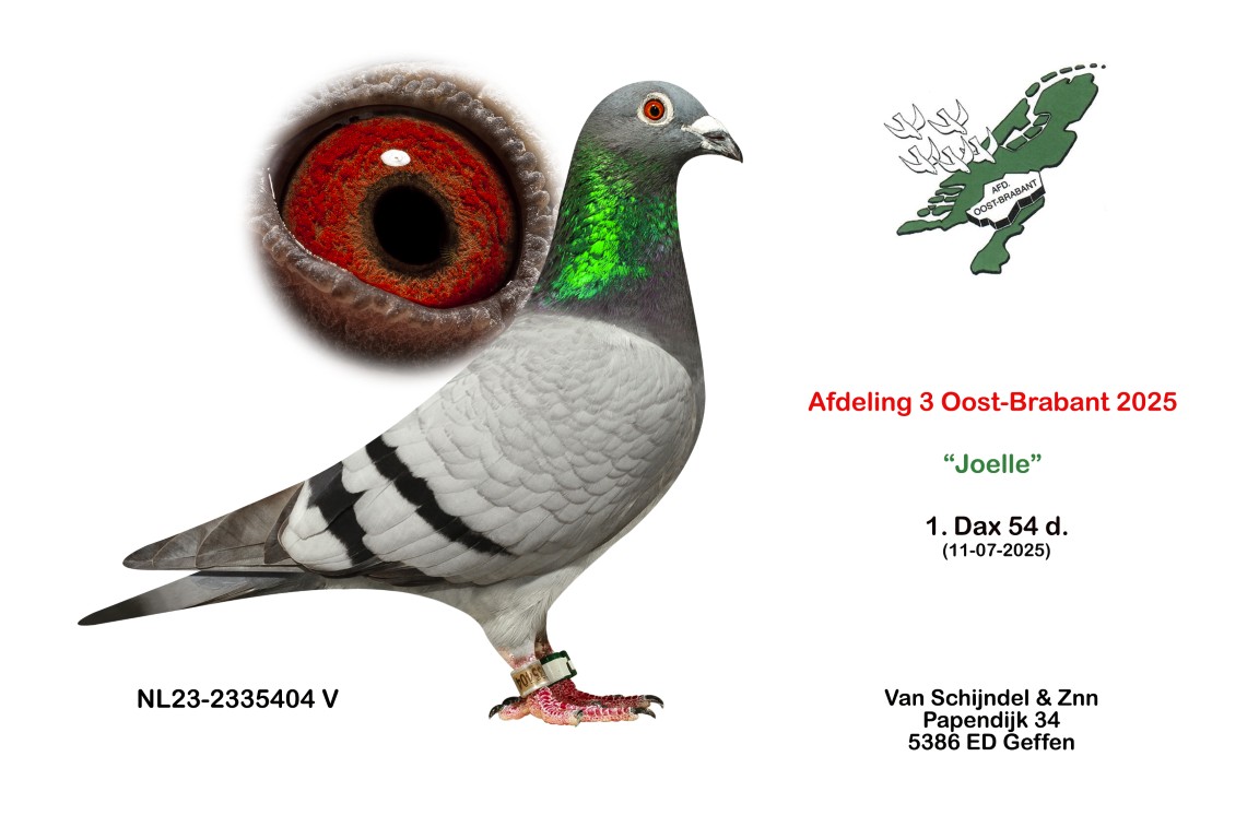 Een jaar geleden zou een bon van de bekende, al jaren sterk presterende en gepassioneerde duivenliefhebber Jo van Schijndel en zijn zonen als het ware een vanzelfsprekendheid zijn in deze veiling. Echter op 19 juli kwam Jo van Schijndel op 76-jarige leeftijd te overlijden. Een gebeurtenis met veel impact op zijn echtgenote Elly, kinderen, kleinkinderen, andere naasten en natuurlijk het familiebedrijf.