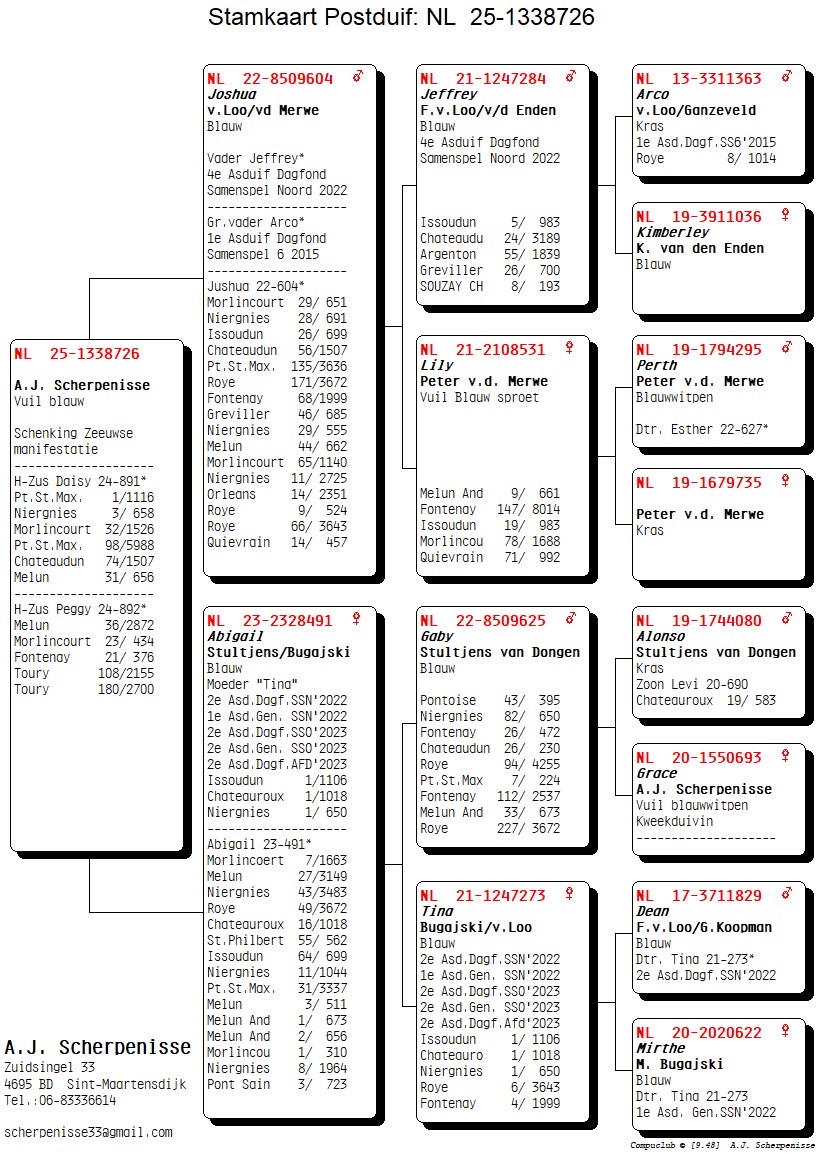Wie biedt mee op deze duif van A.J. Scherpenisse?