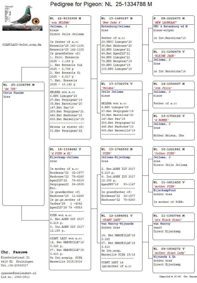 Open de stamboom, overtuig uzelf en grijp uw kans om uw kweekhok te versterken met duiven van dit kaliber!