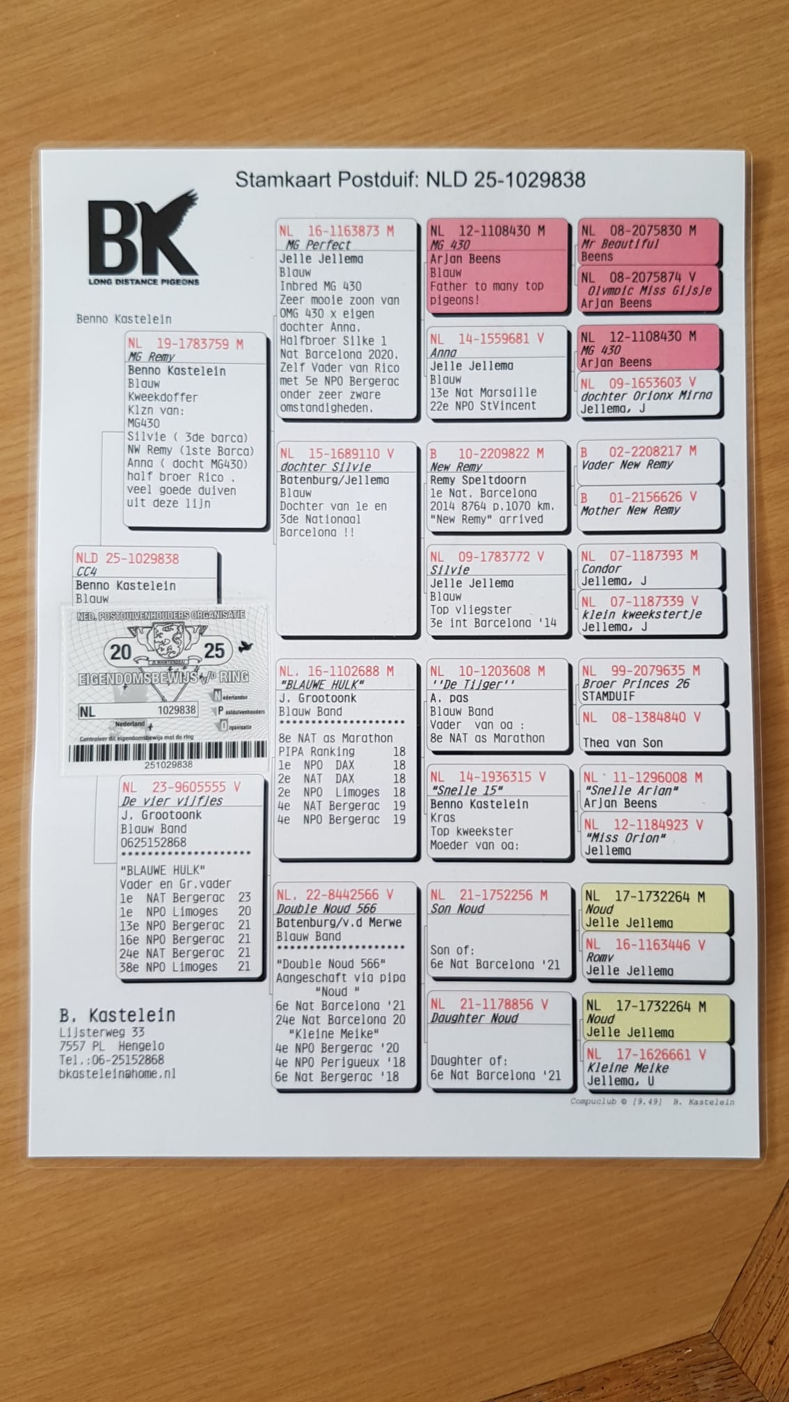 De vader, 19-1783759 “MG Remy”, werd direct naar het kweekhok gehaald en is een kleinkind van niemand minder dan New Remy, 1e Nationaal Barcelona, gekoppeld aan Silvie, 3e Nationaal Barcelona.