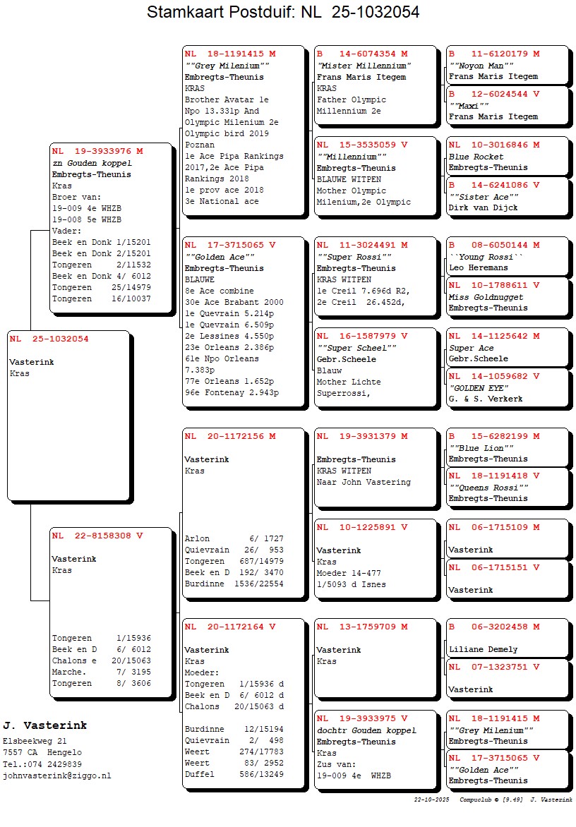 De vader komt rechtstreeks uit het Gouden Koppel van Embregt-Theunis en is al vader van een 1e én 2e provinciaal; de moeder won zelf een 1e provinciaal, wat wil je nog meer?