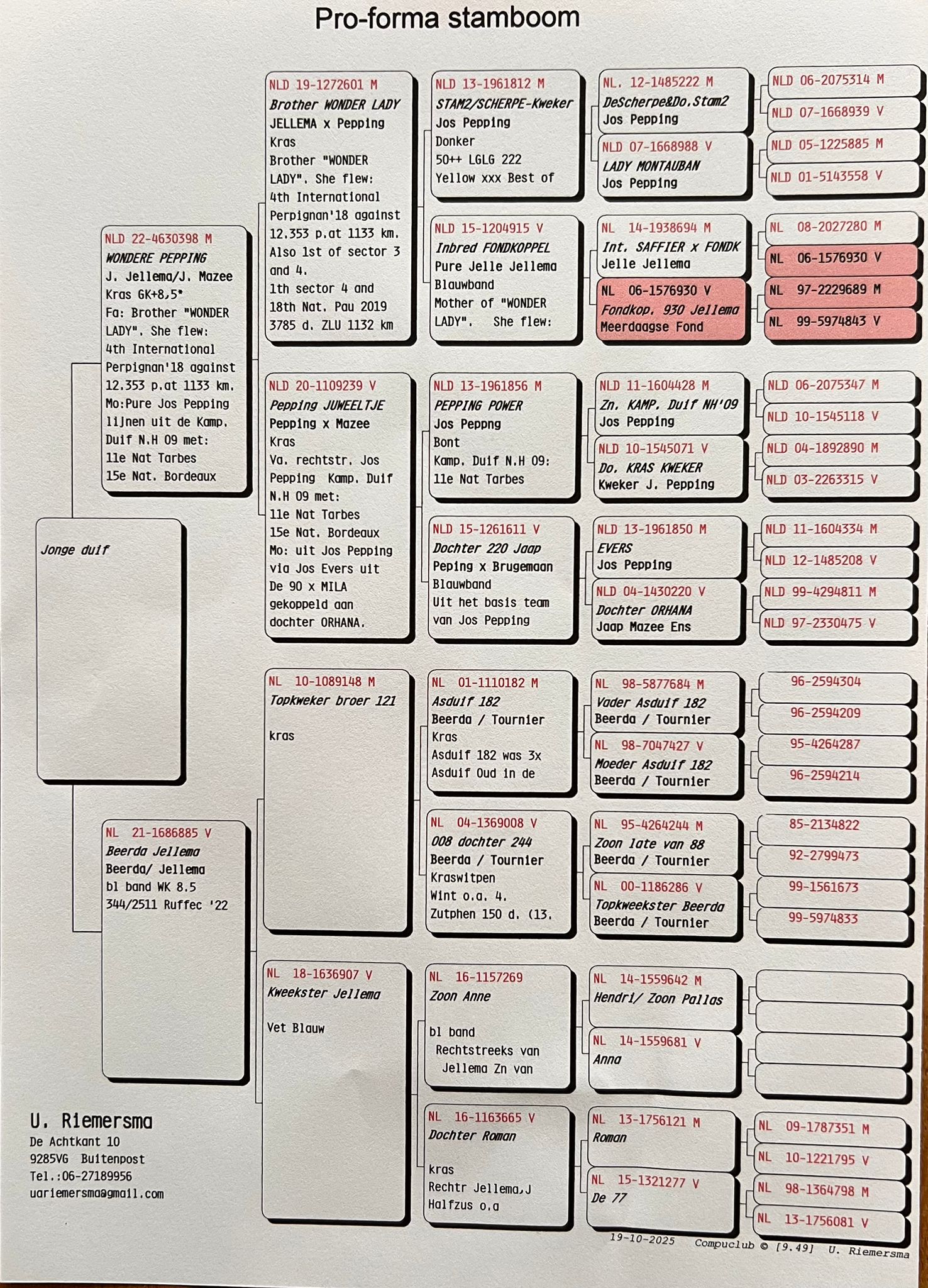 Bon 15 Uitze Riemersma – Jonge duif uit de kwekers lijn wondere Peping J.Jellema/J.Mazee en Beerda/Jellema