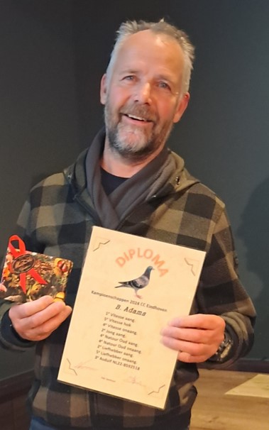 Bert, relatief nieuw in de duivensport, voor het tweede jaar op rij bij de kampioenen van de CC Eindhoven.
