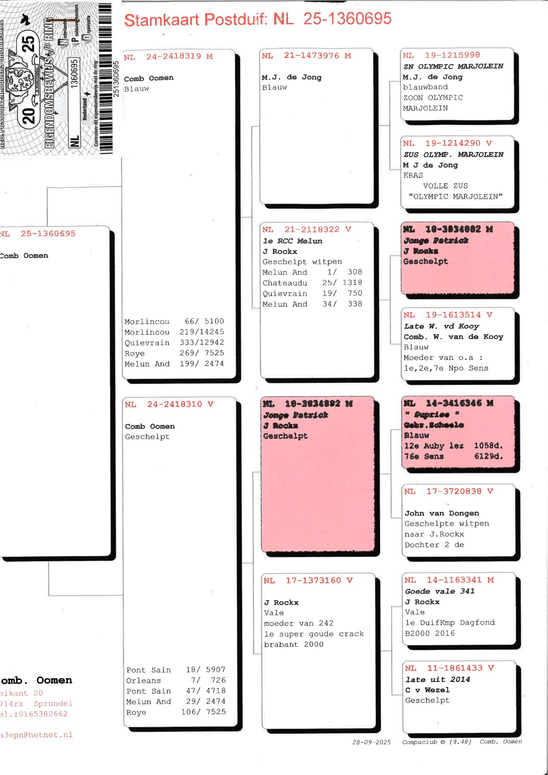 Bon 6: Comb. Oomen Sprundel   laat jong 2025 ter plaatse Zie stamboom