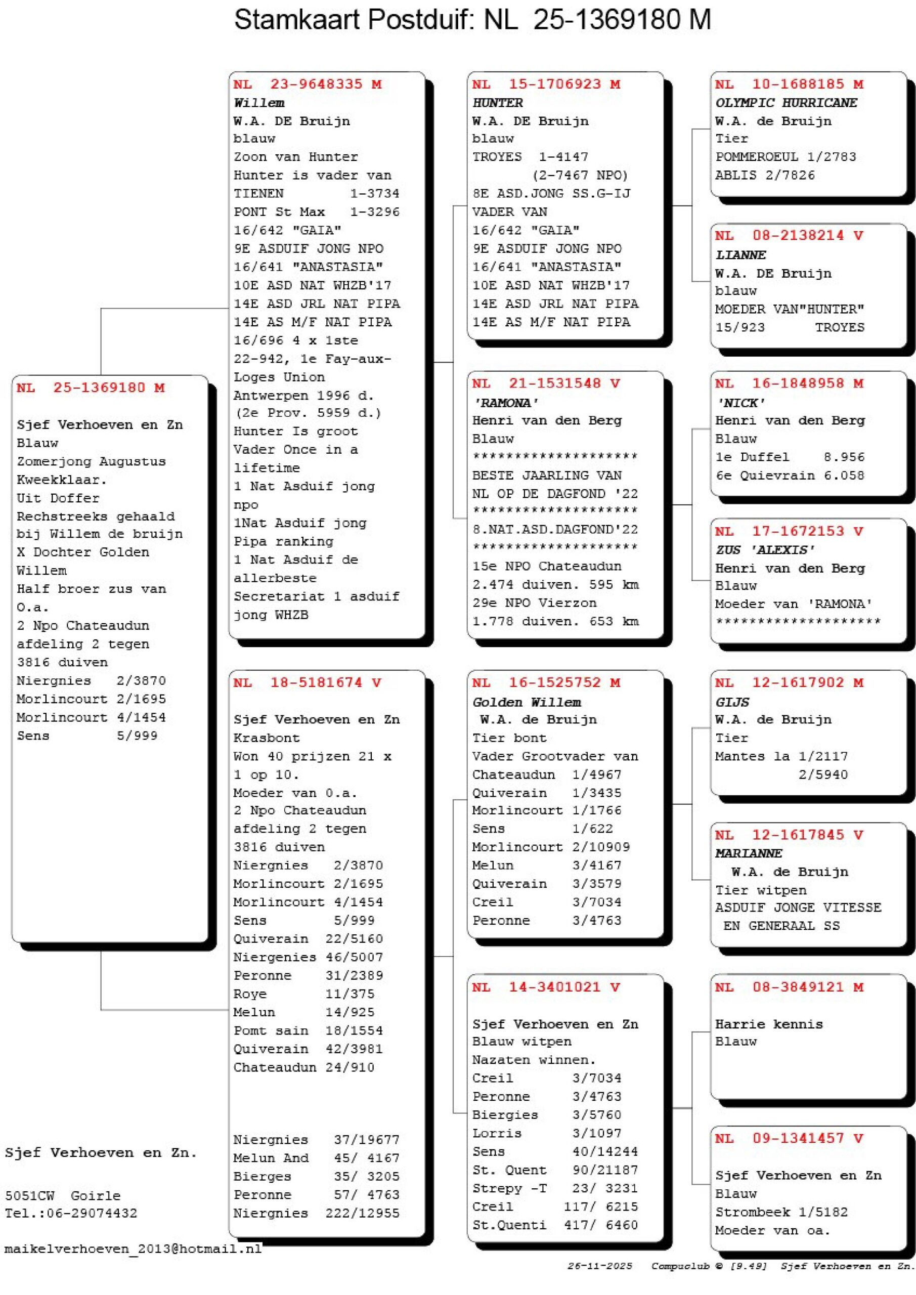 Bon 4: Sjef Verhoeven & Zn. Goirle, duif 2025 ter plaatse Zie stamboom.