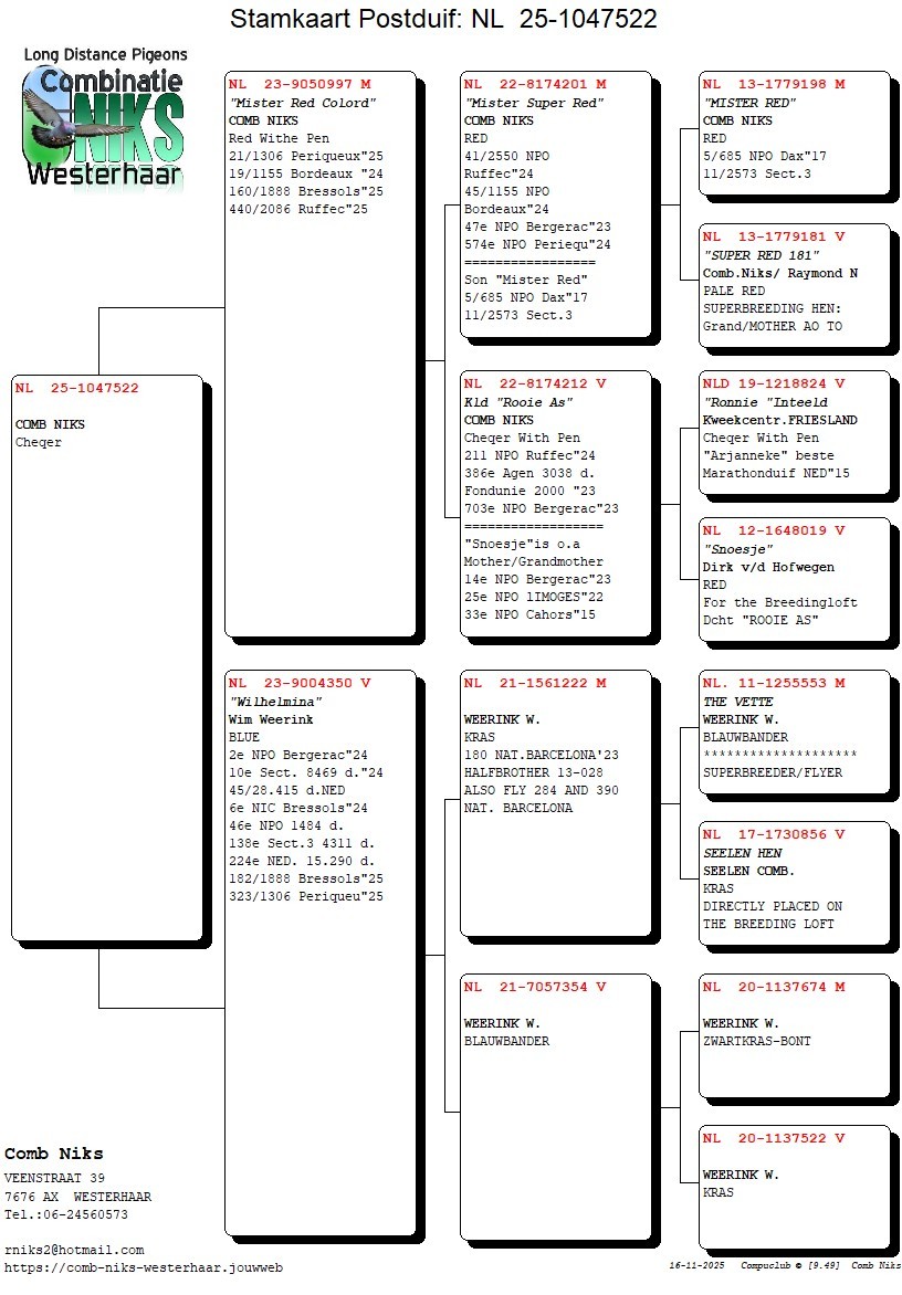 Super mooi dat de Comb. Niks onze vereniging een duif schenkt met ringnummer 25-1047522 uit de 2e NPO Bergerac!!.
