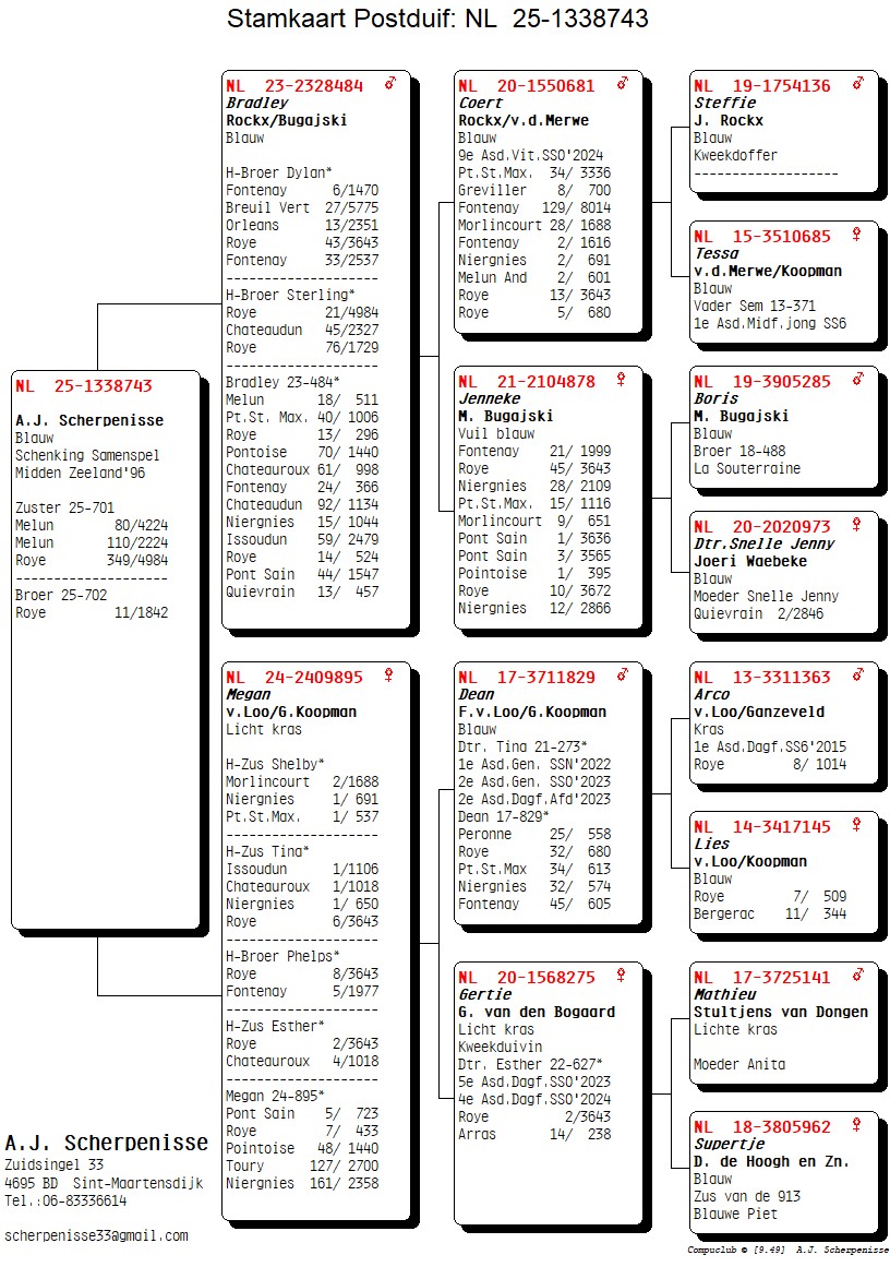 Met een stam duiven die zich keer op keer weet te onderscheiden, wist hij o.a. te behalen: