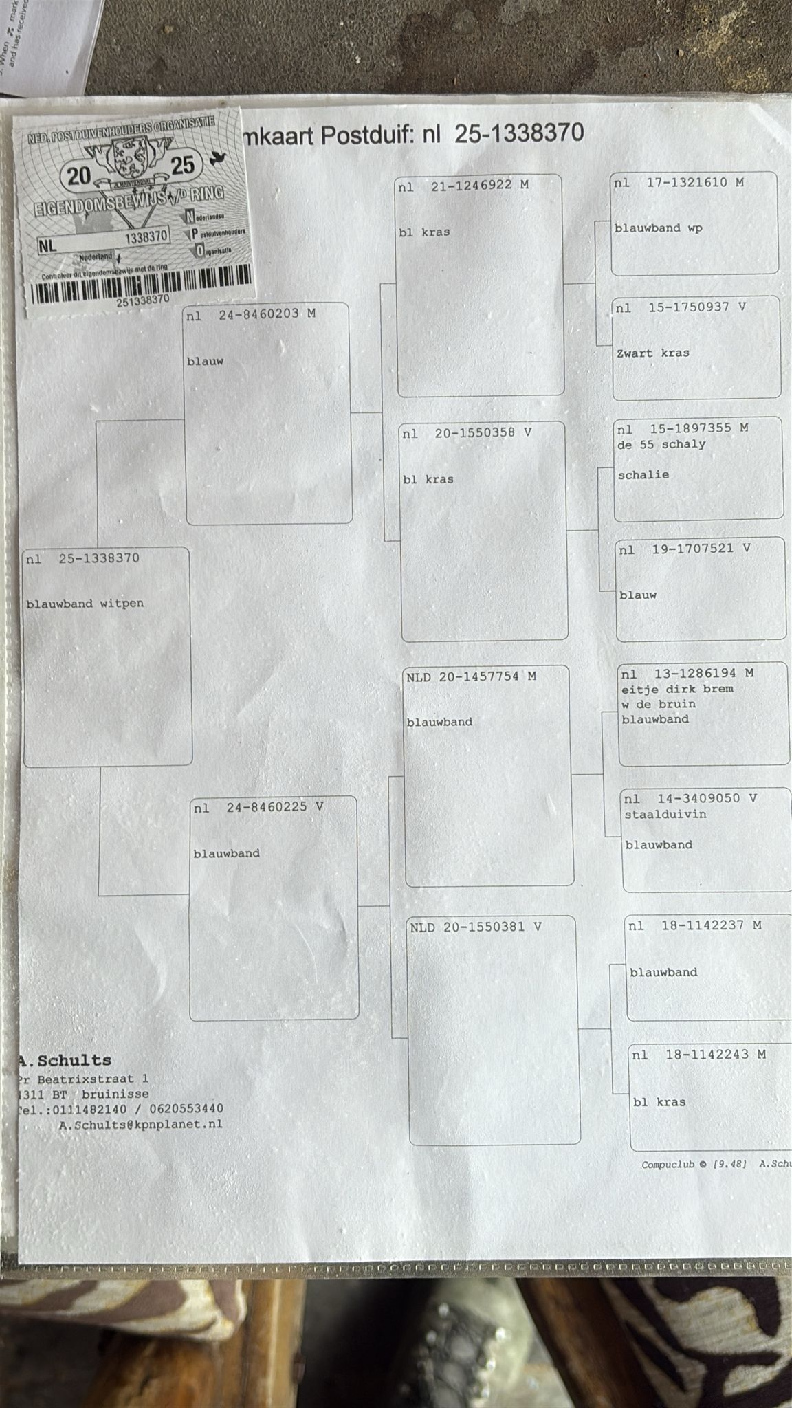 Een unieke kans om rechtstreeks een duif uit dit degelijke hok in handen te krijgen – kwaliteit die zich in de praktijk ruimschoots heeft bewezen.