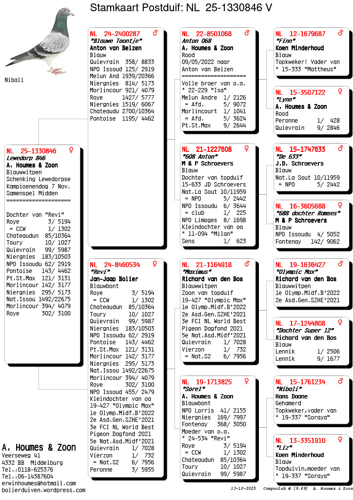 Comb. Houmes A. & Zn schenkt een laat jong 2025. Dit is de kans om uw duiven een boost te geven op de dagfond!