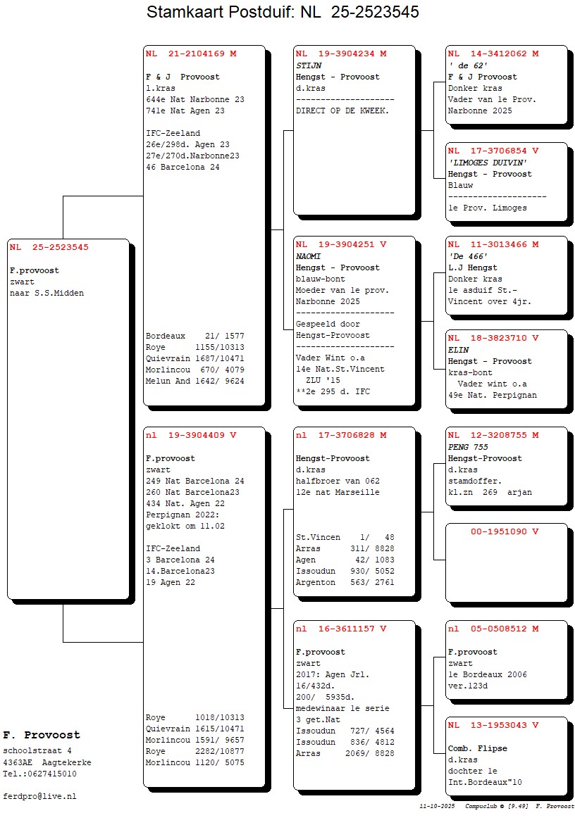 Ferdinand is een echte liefhebber van het zware werk. Hij speelt zijn duiven zowel op de ochtend als middaglossingen. Geen grote aantallen maar een geselecteerde groep duiven wordt er per vlucht gespeelt. Dat de duiven van Ferdinand meekunnen met de top hebben zijn duiven ook dit jaar weer laten zien. Zo behaalde zijn 5-jarige kras bonte duivin, de 20-1539341 de 1e provinciaal op Narbonne. Dit was tevens goed om de 33e nationaal te noteren. Tevens behaalde hij zelfs een Clean Sweep met 5 van de 5 in de prijzen.