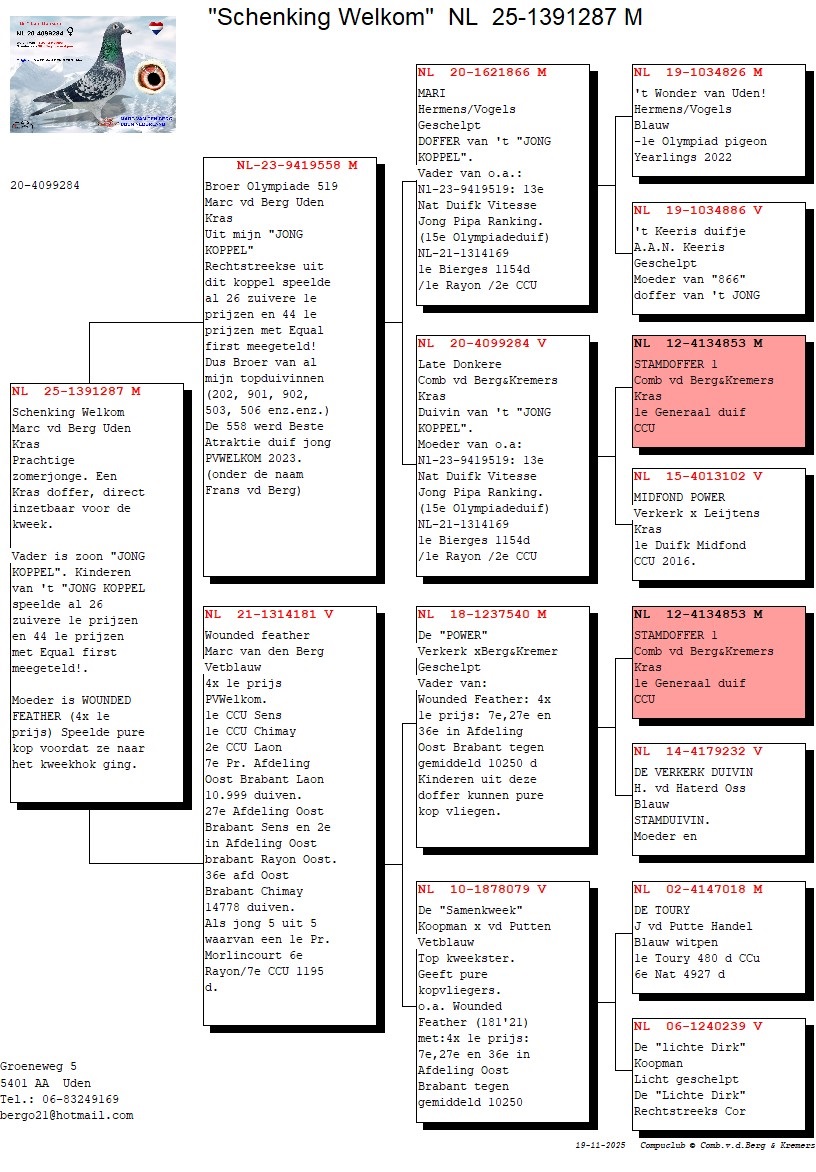 20. Marc van de Berg Uden, Schenkt een jonge duif 2025 zie stamkaart