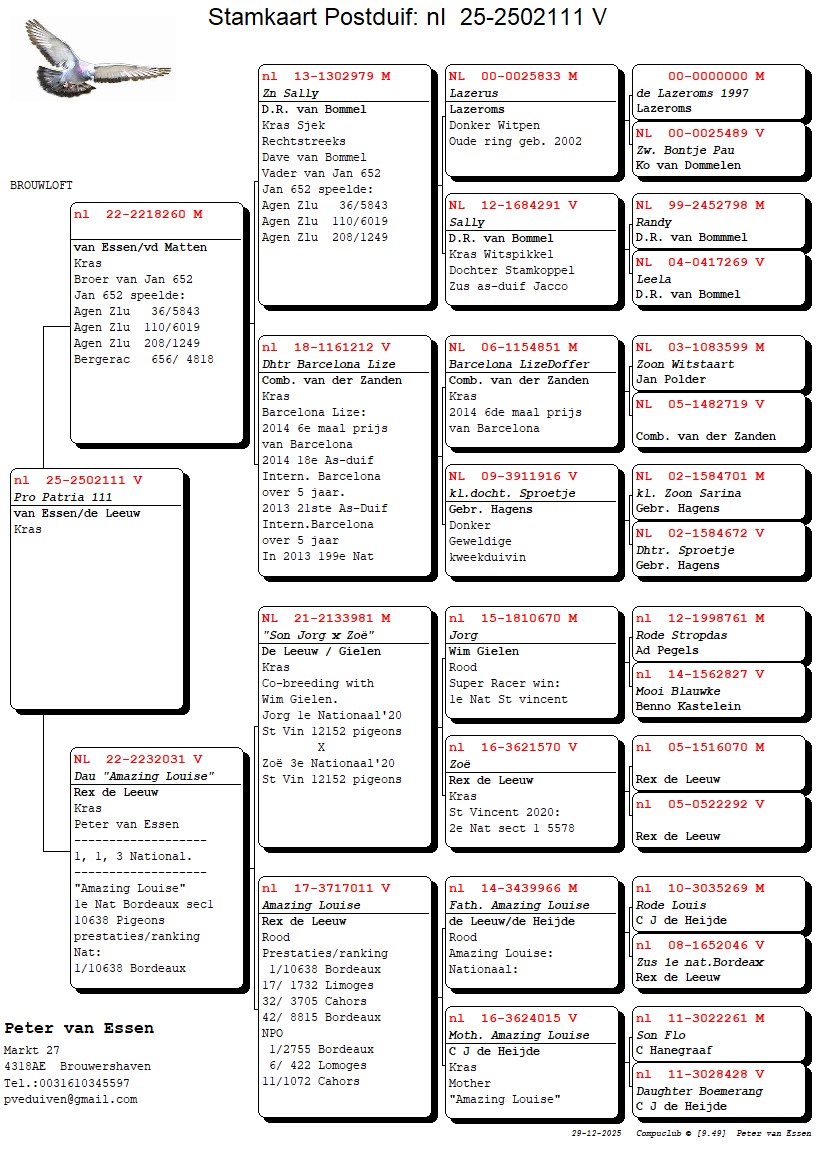 Peter schenkt 1 jonge duif uit de kwekers 2025. (Zie stamboom)