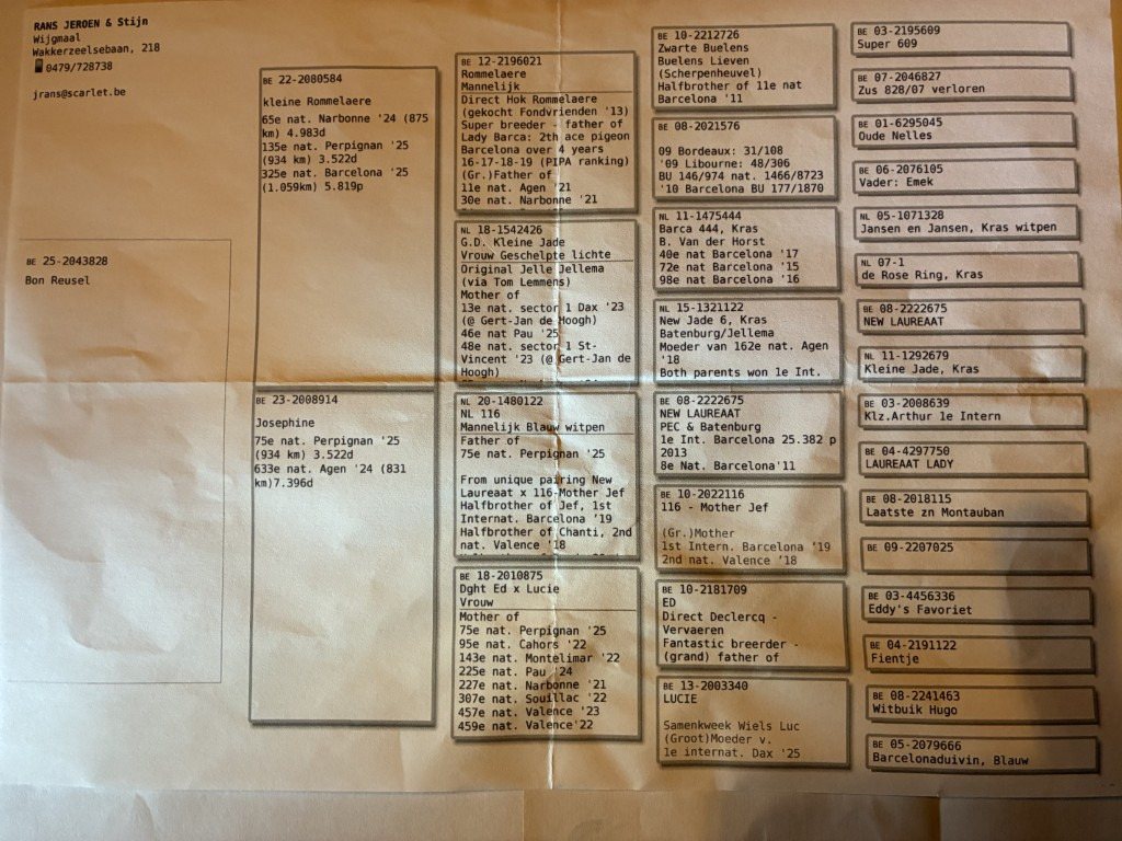 Schenkt: jonge duif 2025 ter plaatse. Zie stamkaart