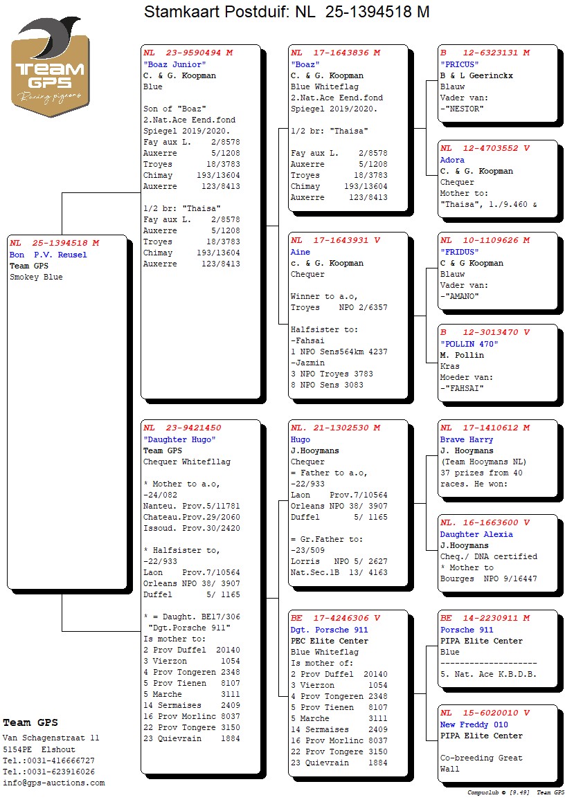 Wat een prachtige bon weer van team GPS. Ze vliegen de pannen van het dak en behoren tot de nationale top van de duivensport.