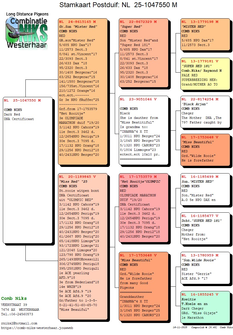 Laat jong 2025 ( kld. Het Rooitje met DNA Certi. ) zie stamboom