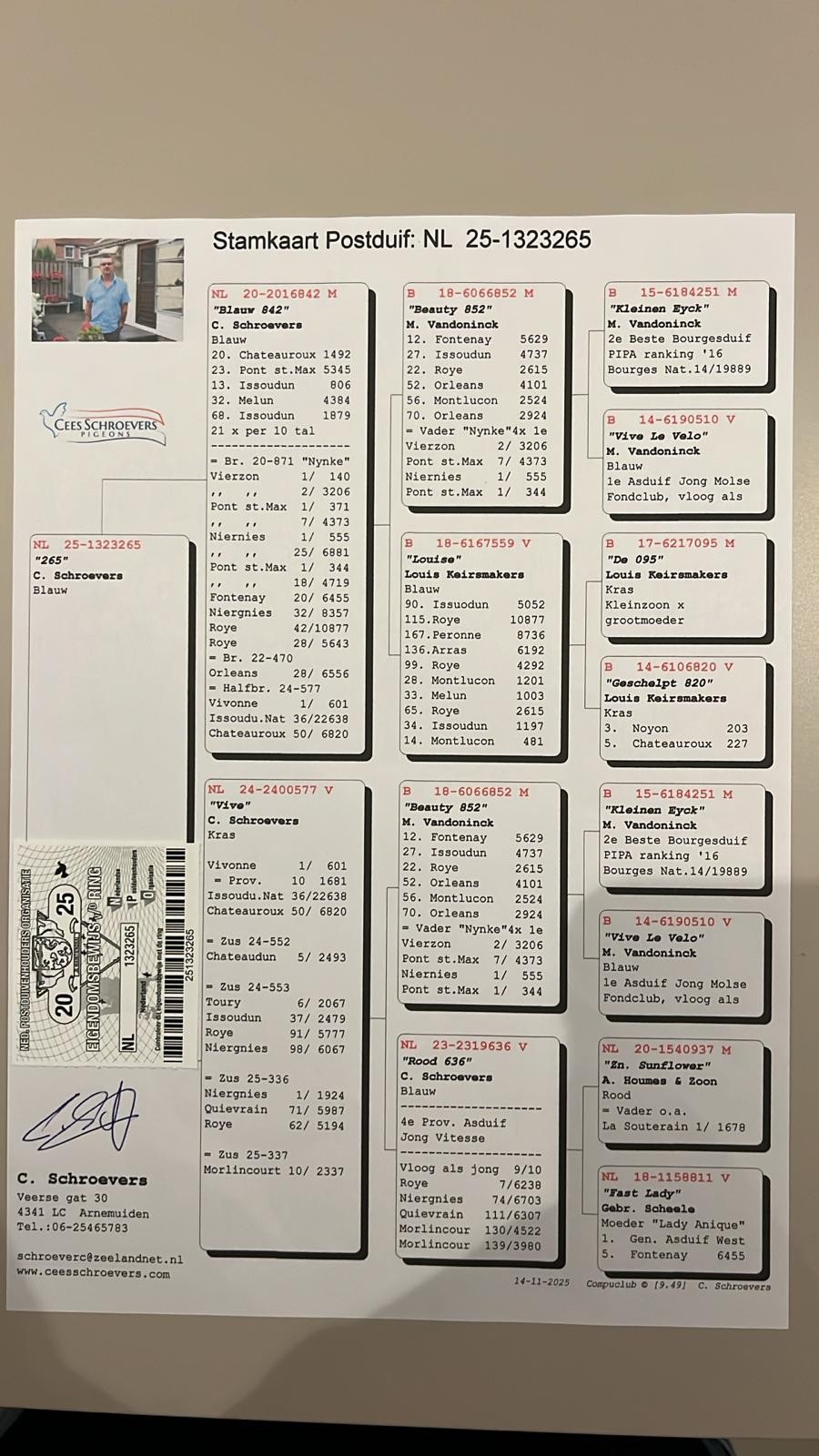 Ook in 2025 wisten de duiven van Cees weer de top van de uitslag te pakken met o.a
