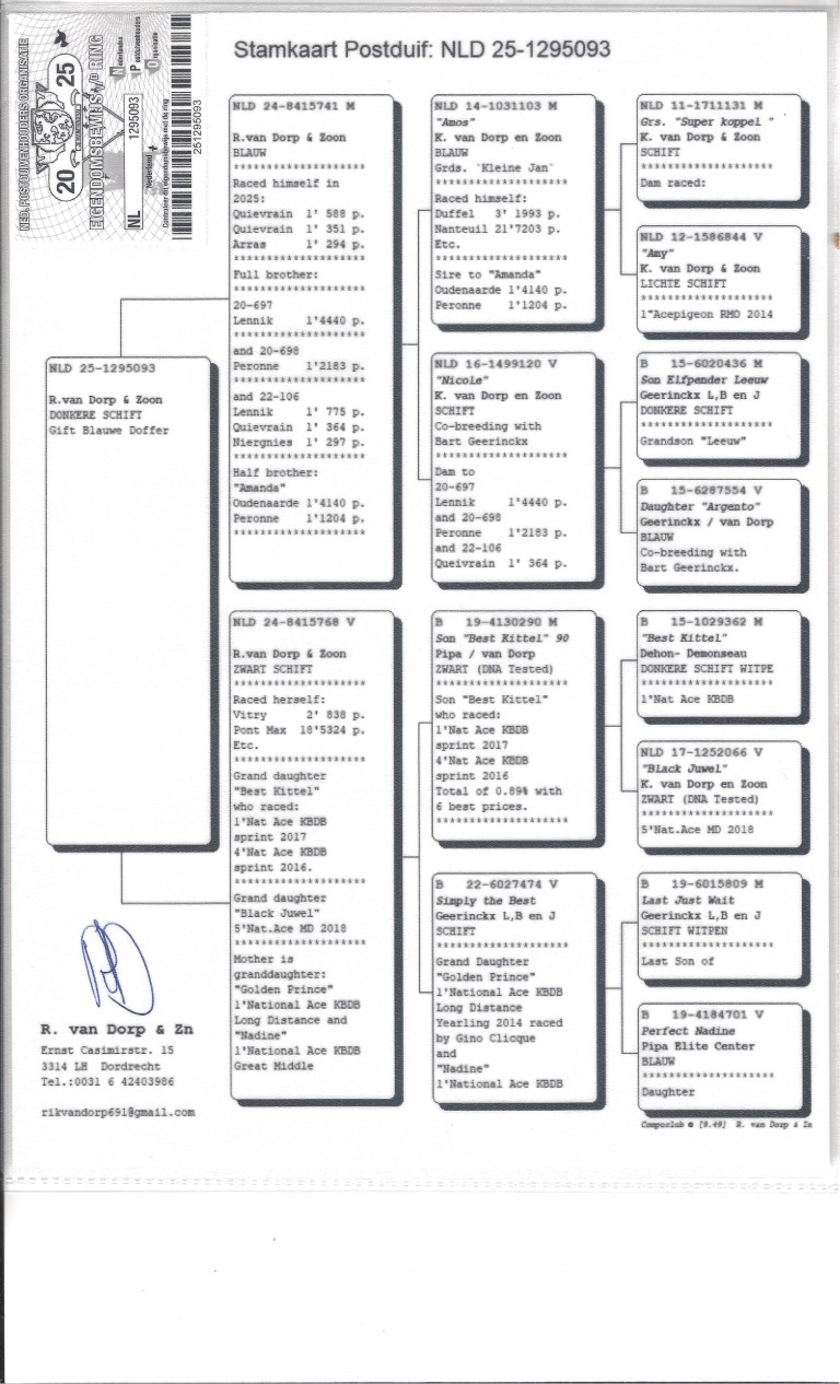 Een oud lid van P.V de Blauwe Doffer, is overgegaan naar Dordrecht en daar vliegt hij, samen met zijn zoon, in kampioensstijl.