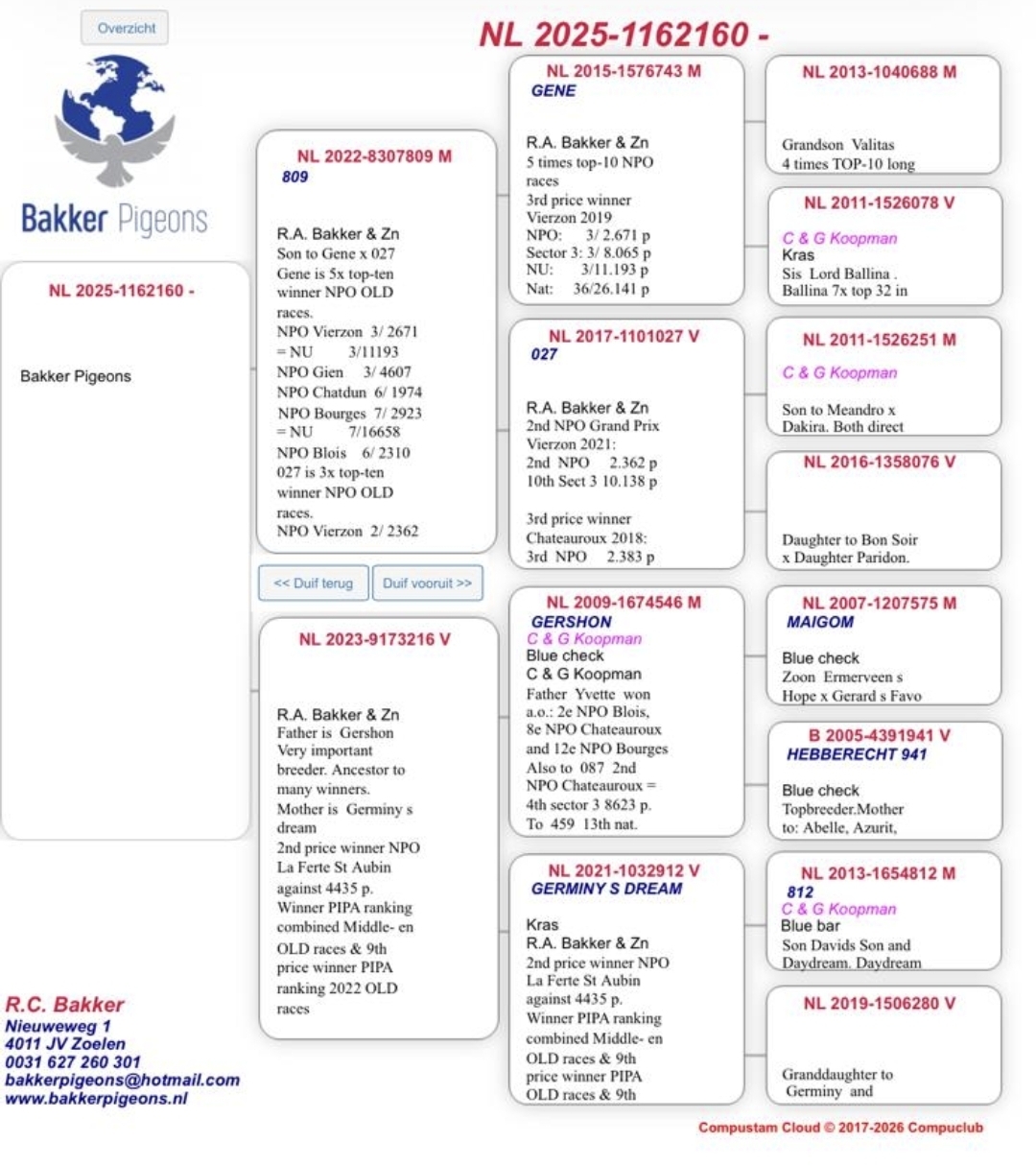 Bon duif 2025, zie stamkaart (duif op te halen bij GPS-Auctions)
