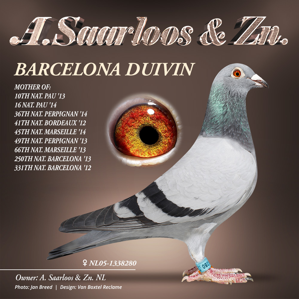 Grootmoeder: NL05-1338280. ‘Barcelona duivin’, A. Saarloos & Zn.