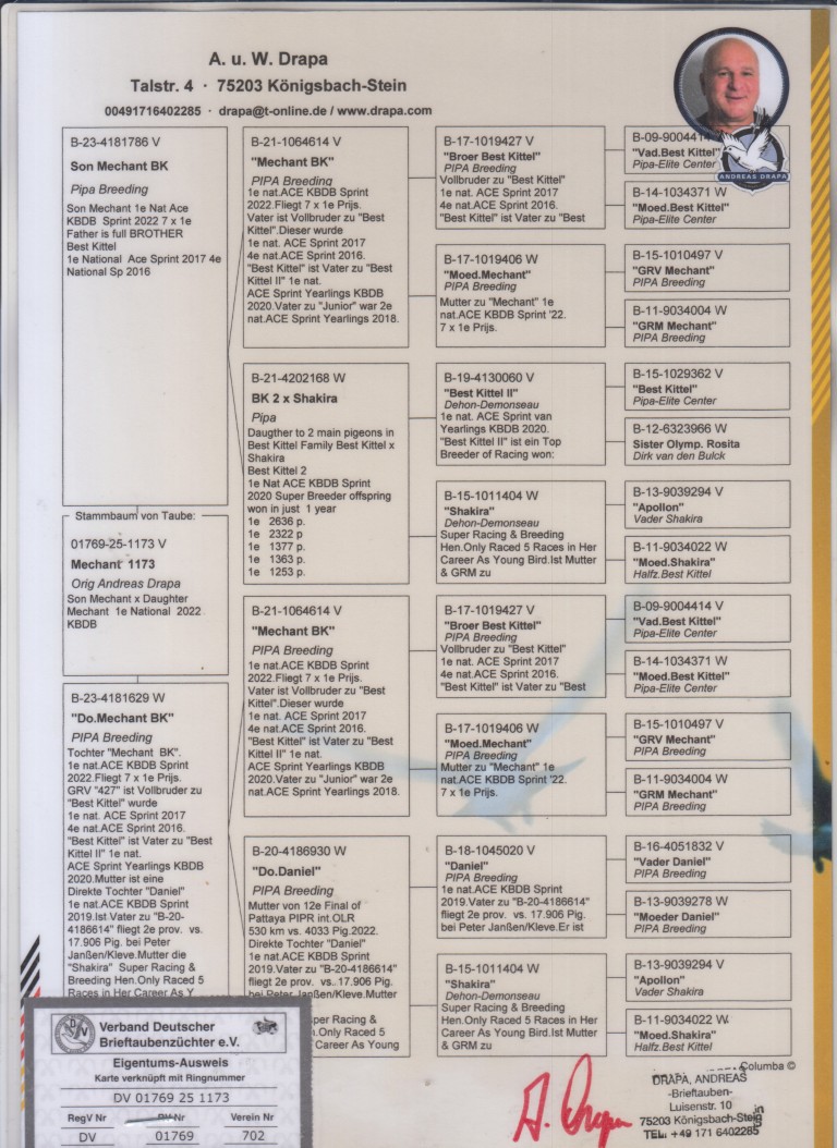 Grootmoeder : BE21-4202168. “BK 2 x Shakira” Pipa Breeding.