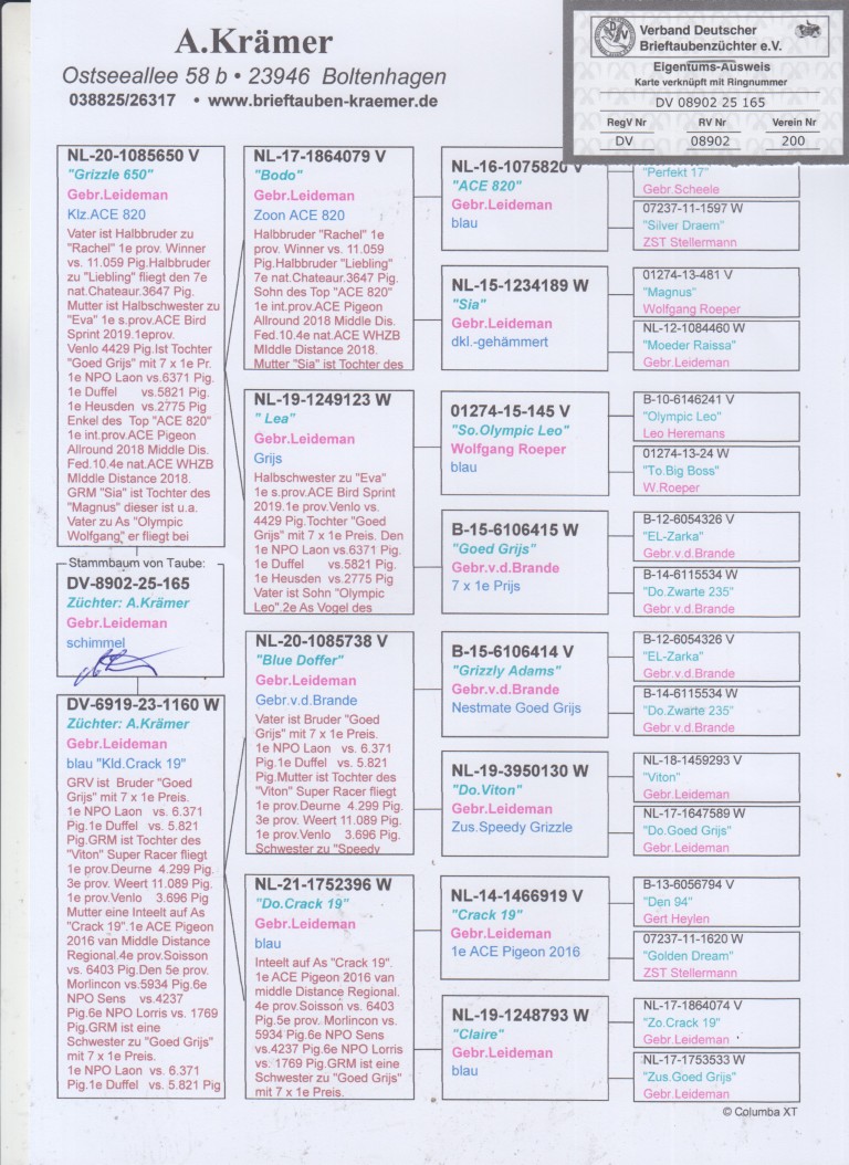 Moeder: DV6919-23-1160. Kweker A. Krämer. Gebr. Leideman.
