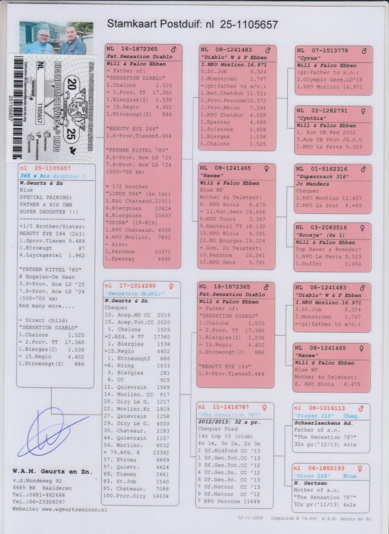 Grootvader: NL16-1872365.  Vader ‘Sensation Diablo’, Will & Falco Ebben.