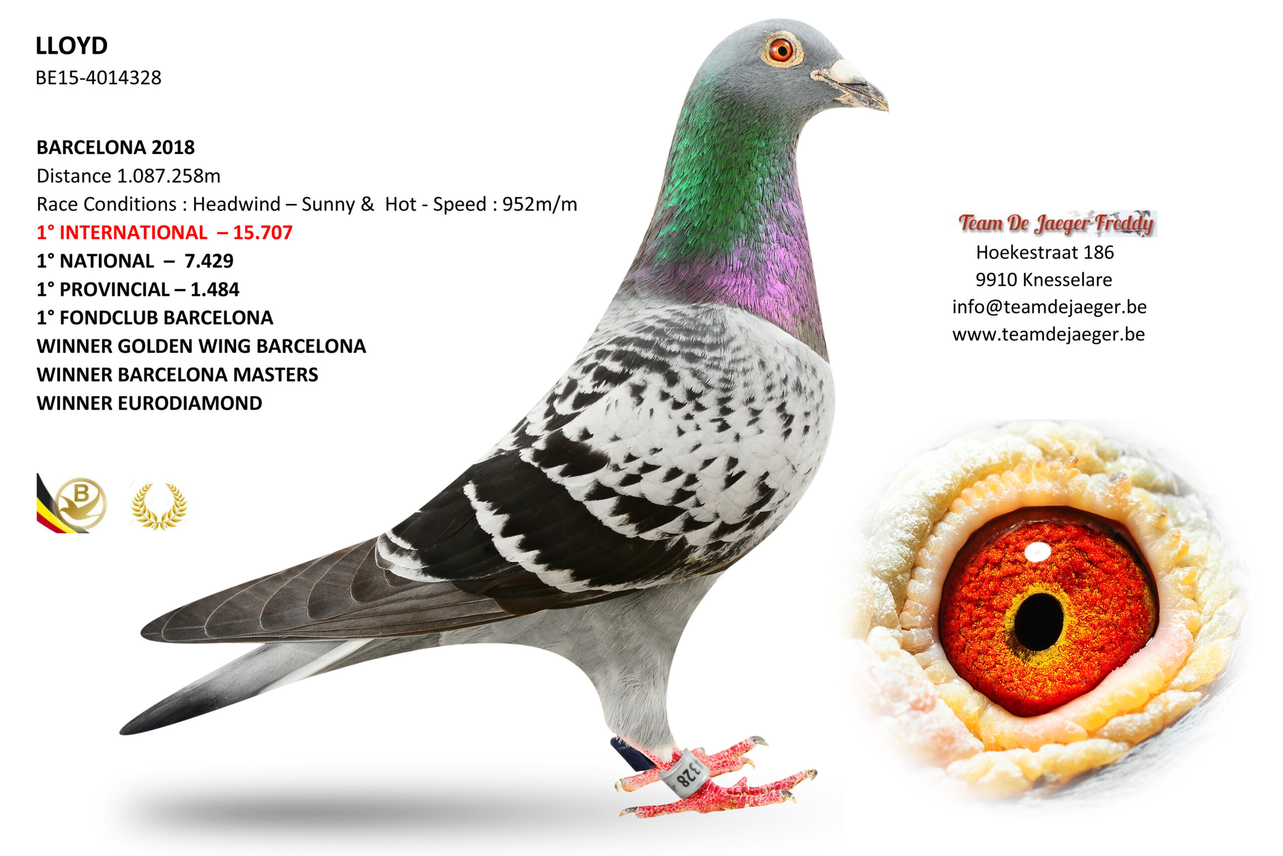 DNA certified. Is winnaar 1. Int. Barcelona 1258 km.