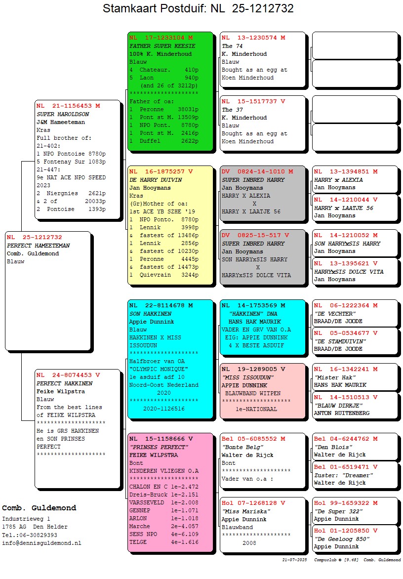 Grootvader: NL17-1233104. ‘Vader Super Keesie’, 100%. K. Minderhoud.
