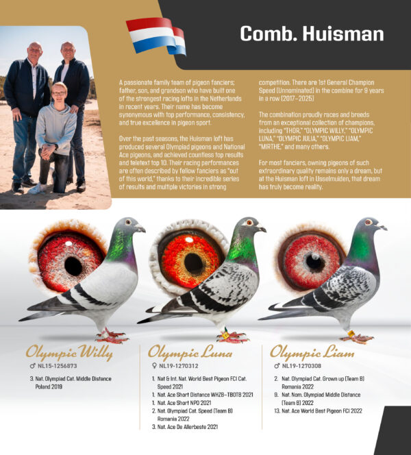 Een van de sterkste hokken van Nederland in de afgelopen jaren is zonder twijfel dat van Combinatie Huisman uit IJsselmuiden. Een echt familiehok van vader, zoon en kleinzoon, dat is uitgegroeid tot een grote naam in de Nederlandse duivensport.