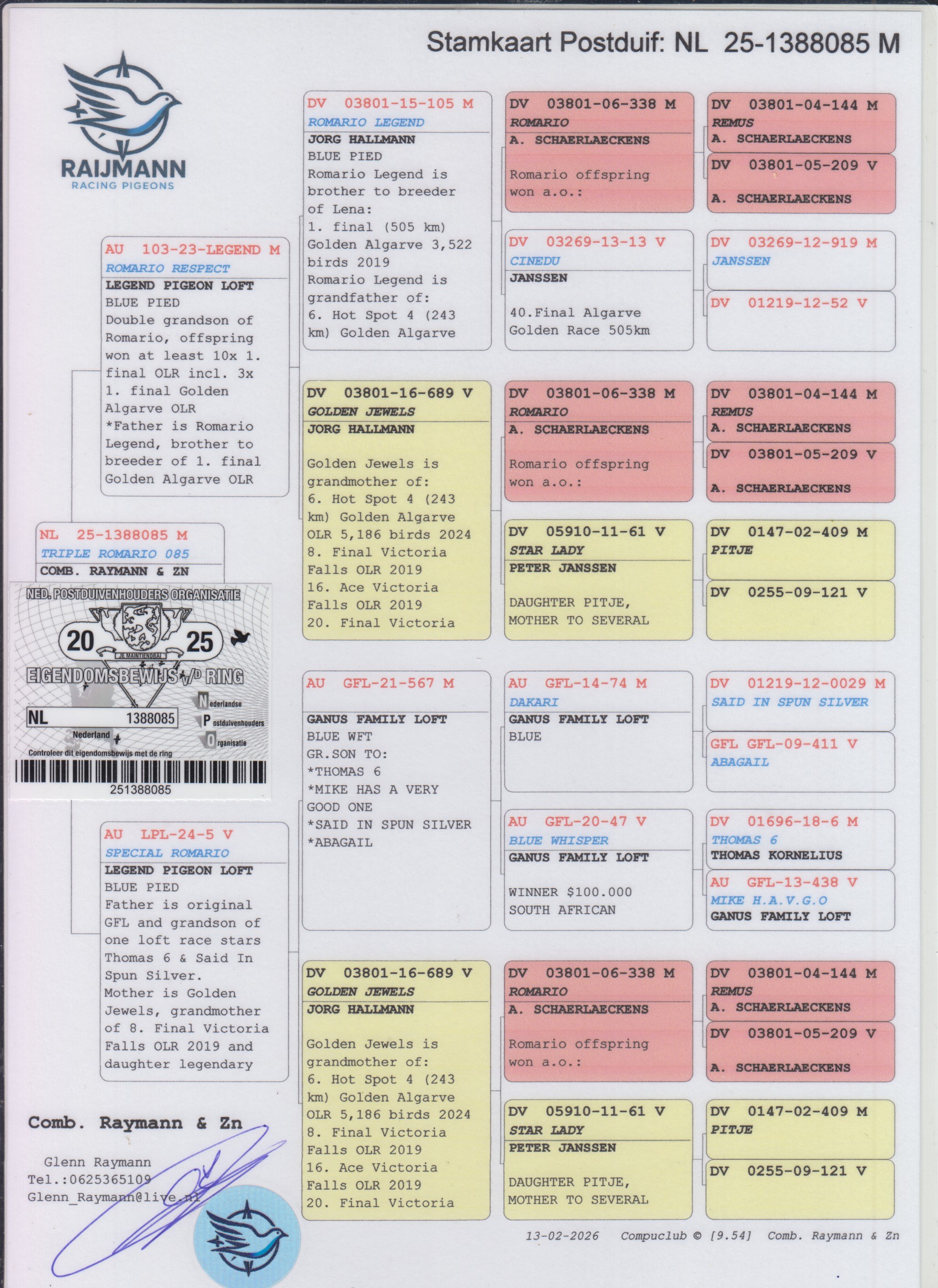Grootvader: DV03801-15-105. ‘Romario Legend’, Jorg Hallmann