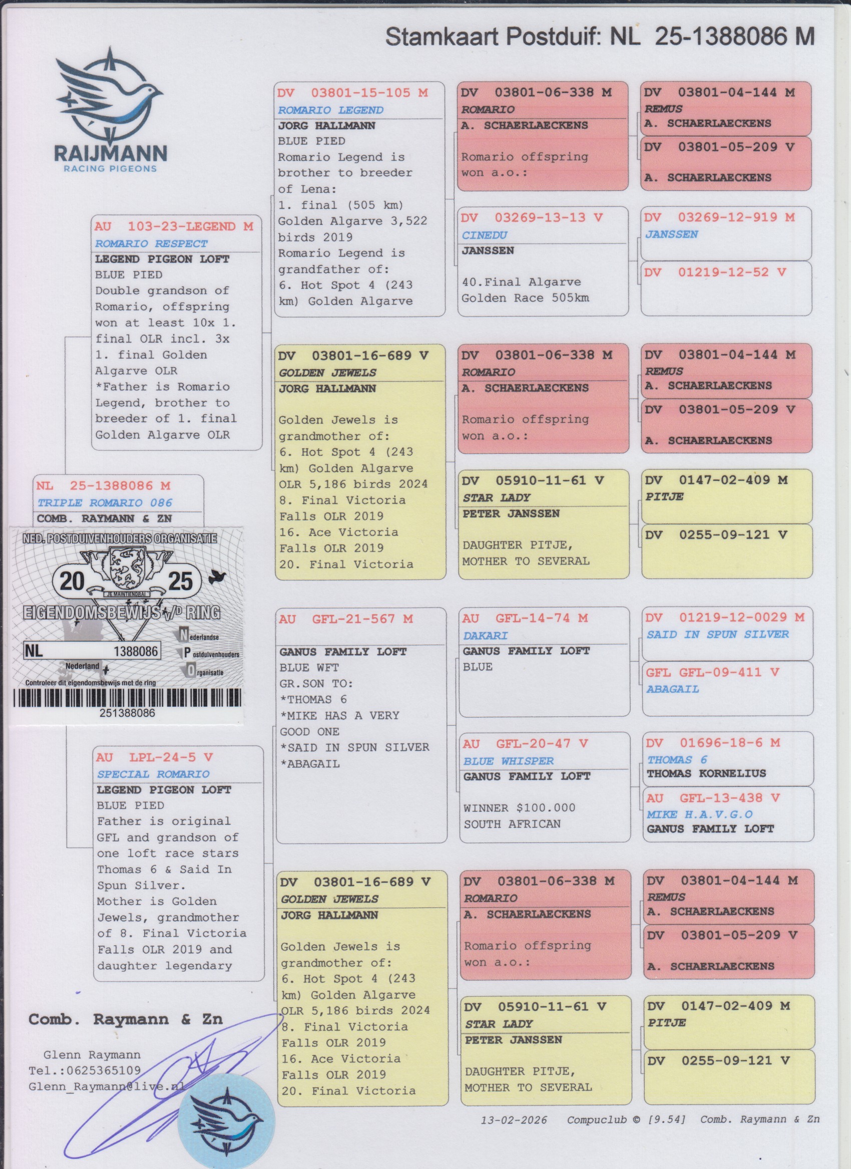 Grootvader: DV03801-15-105. ‘Romario Legend’, Jorg Hallmann