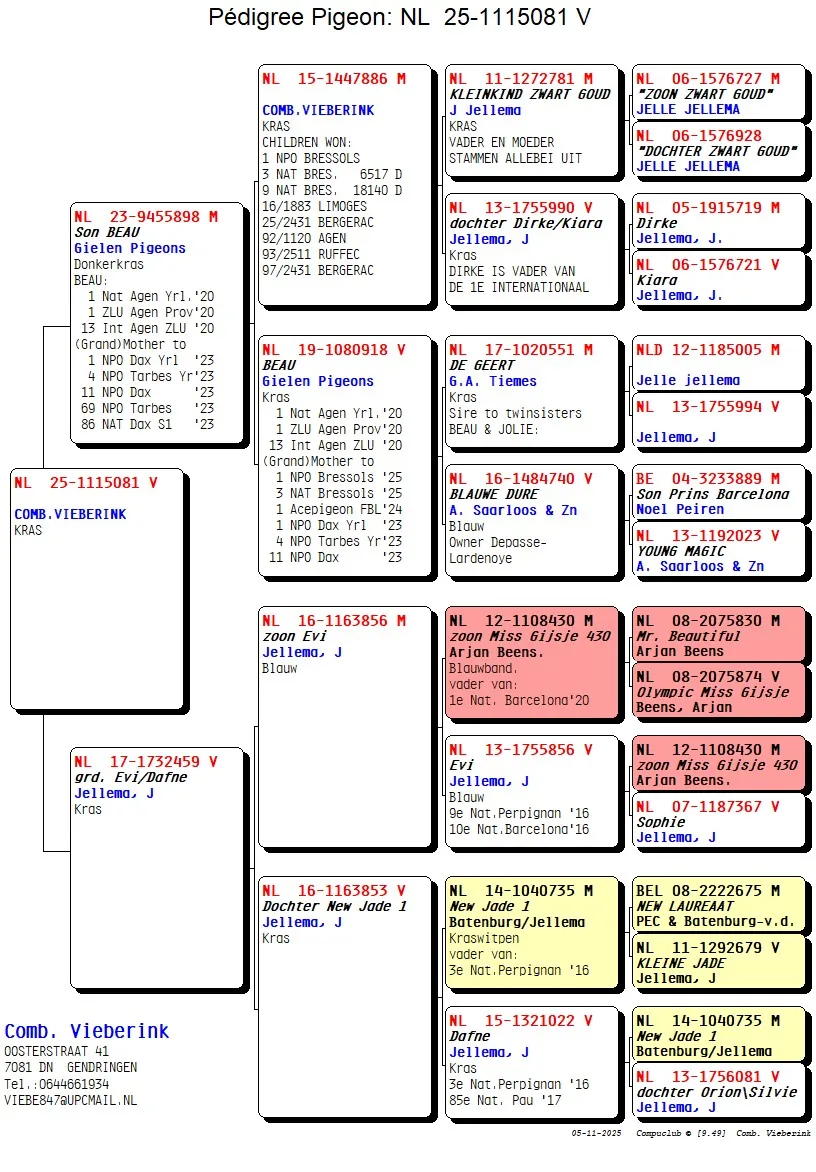 Vader NL23-9455898 Zoon “Beau” Gielen Pigeons.