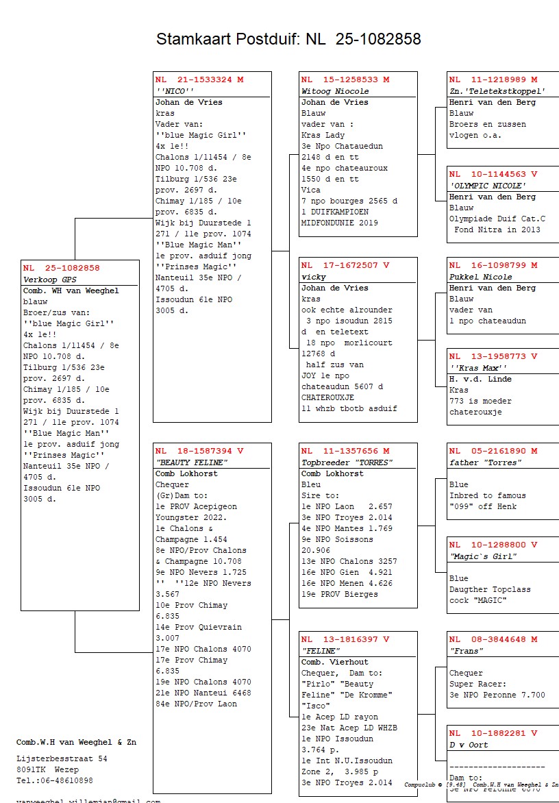 Grootvader: NL11-1357656. Topbreeder ‘Torres’, Comb. Lokhorst.