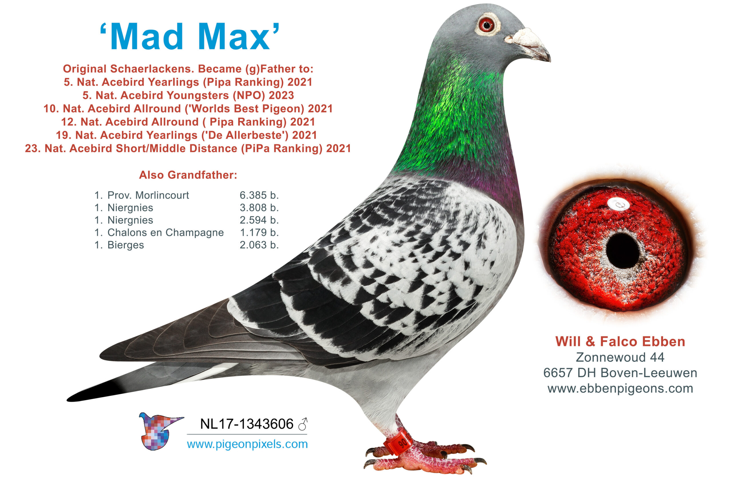 Mad Max is (groot)vader van meerdere nationale topduiven, waaronder 4e, 5e, 5e, 10e, 12e, 12e en 19e Nationale Asduif.