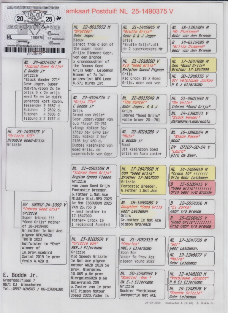 Hij Komt uit de 17-998 grootvader van “1. Nat Asduif Midfond NPO/WHZB ’23”.