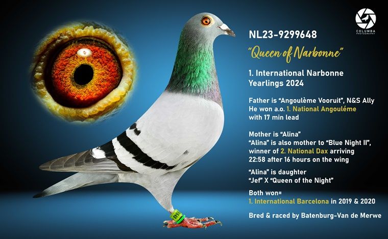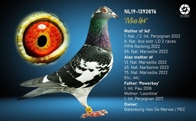 Grootmoeder: NL19-1292876. ‘Miss Urk’, Van Den Berg Pigeons.