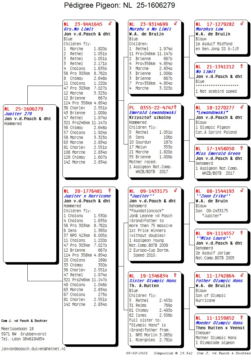 Grootvader: NL23-9314699. ‘Murphy’ x ‘No Limit’, W.A. de Bruijn