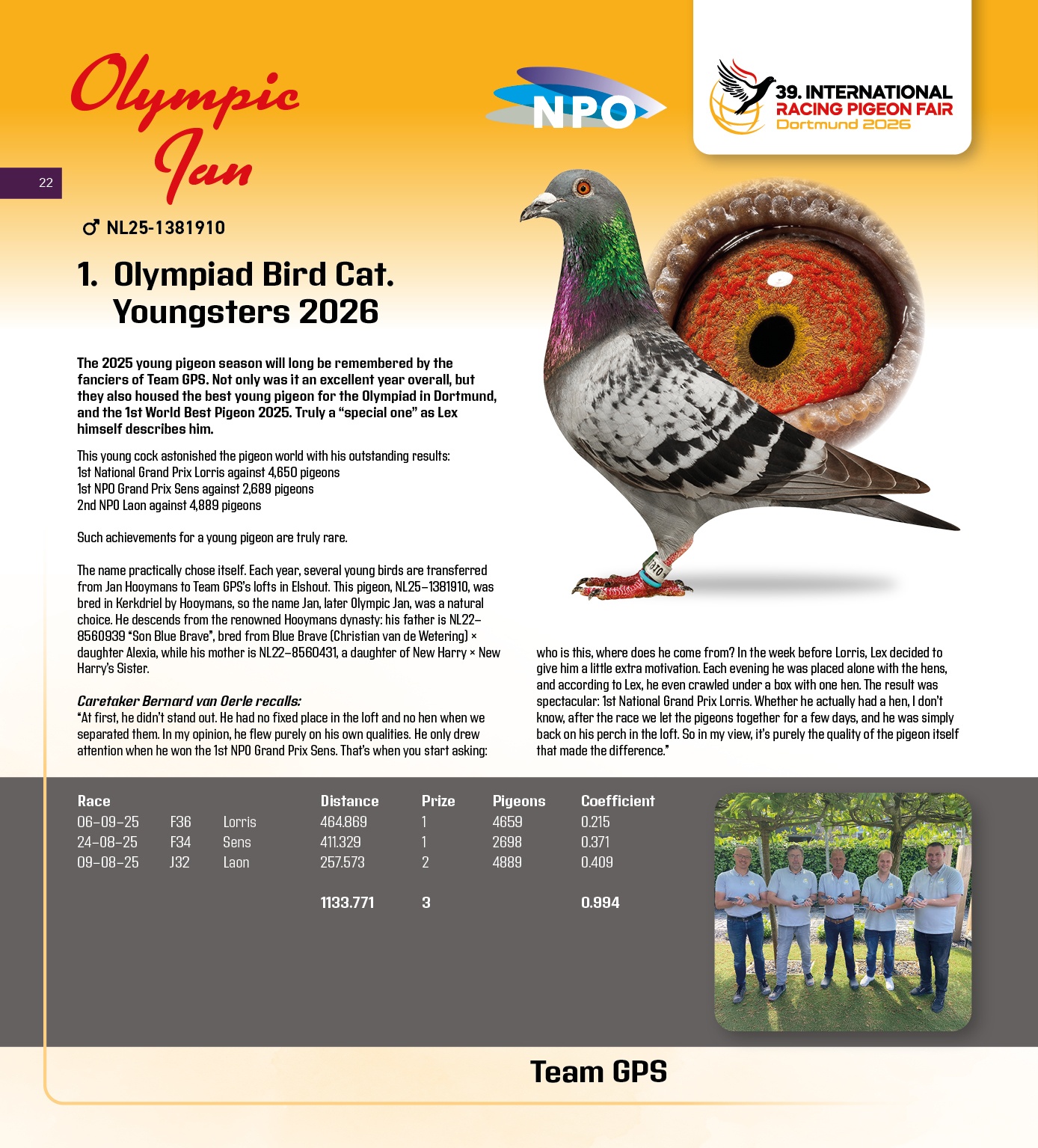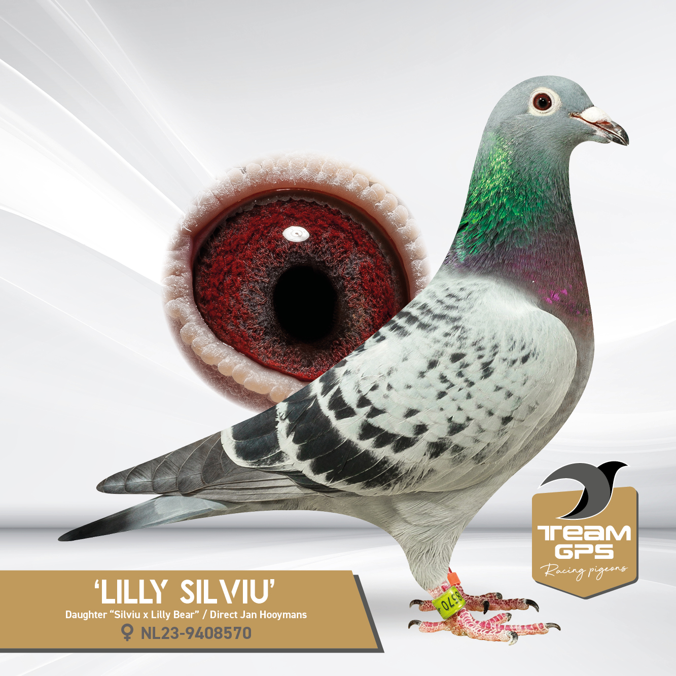 (1/2) zus 2. Nat. Lorris 4.650 d., 3. Prov. Chimay 16.639 d. (Achter 2 hokgenoten), 3. Nat. Lorris 4.650 d., 17. Prov. Chimay 7.728 d., uit: ”Geraldo”, 1/2 broer 1. Asduif OLR PIPR Pattaya x ”Lilly Silviu”, dochter ”Silviu”