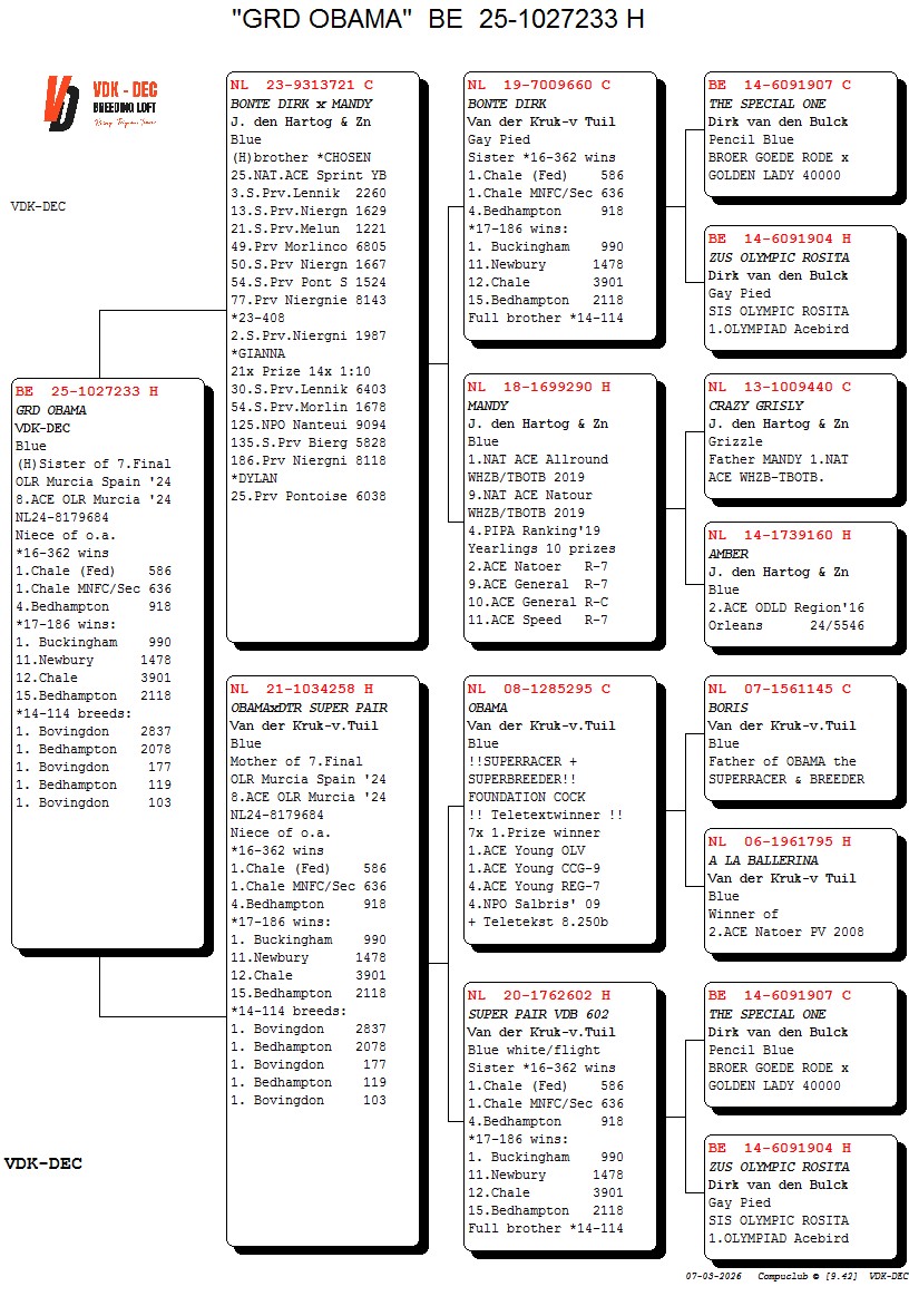 | Aangeboden door | VDK-DEC Breeding Loft |