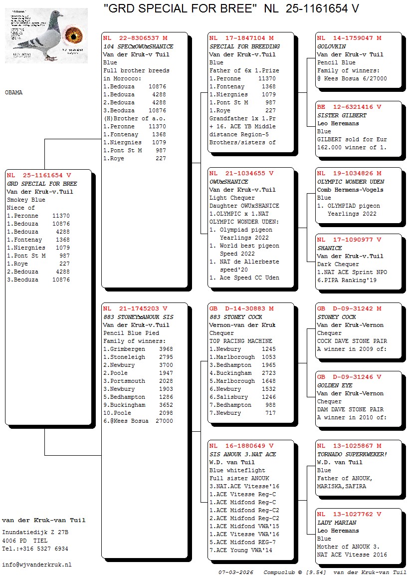 Grootvader: NL17-1847104. ‘Special for breeding’, Van der Kruk-V. Tuil